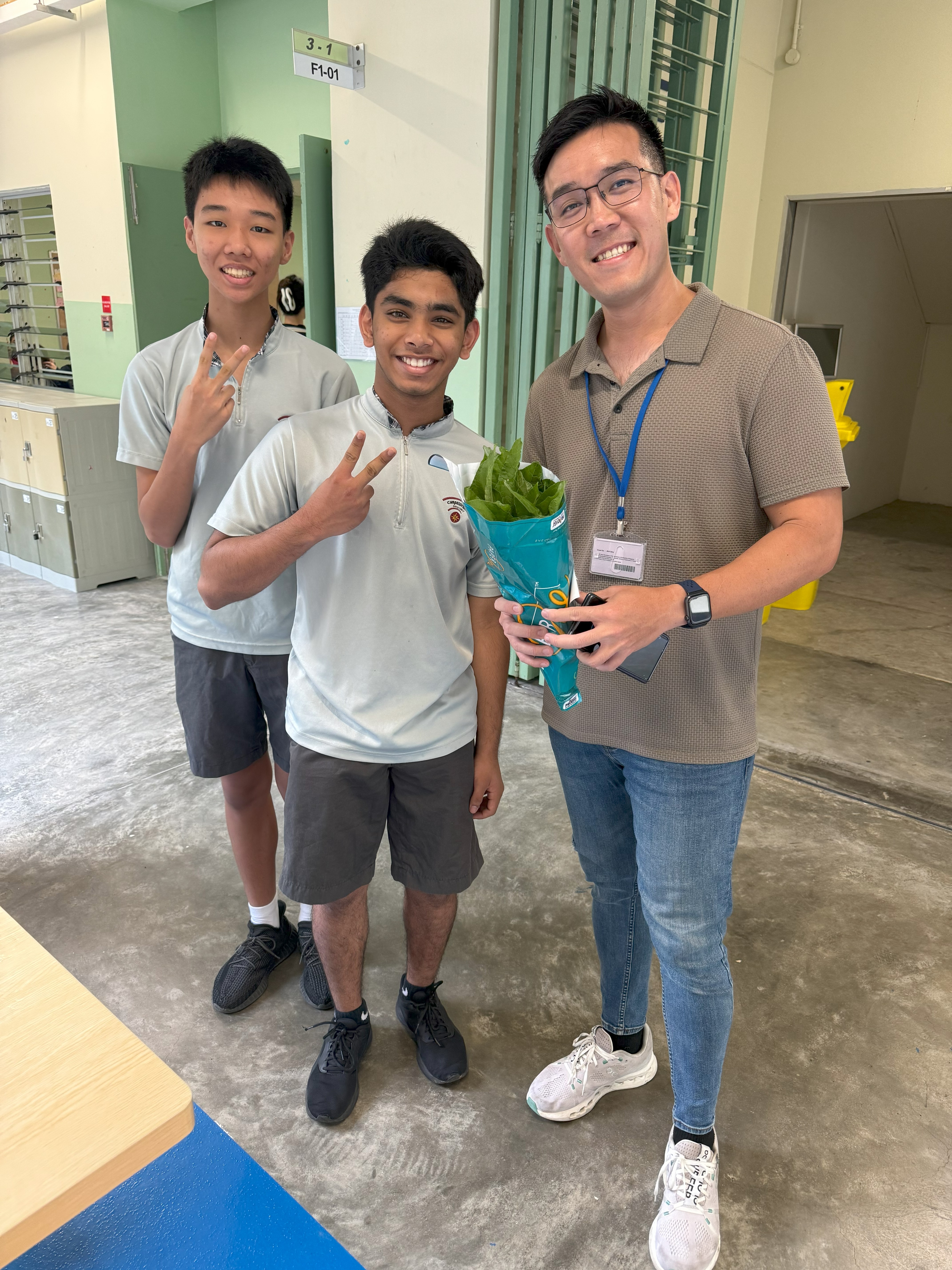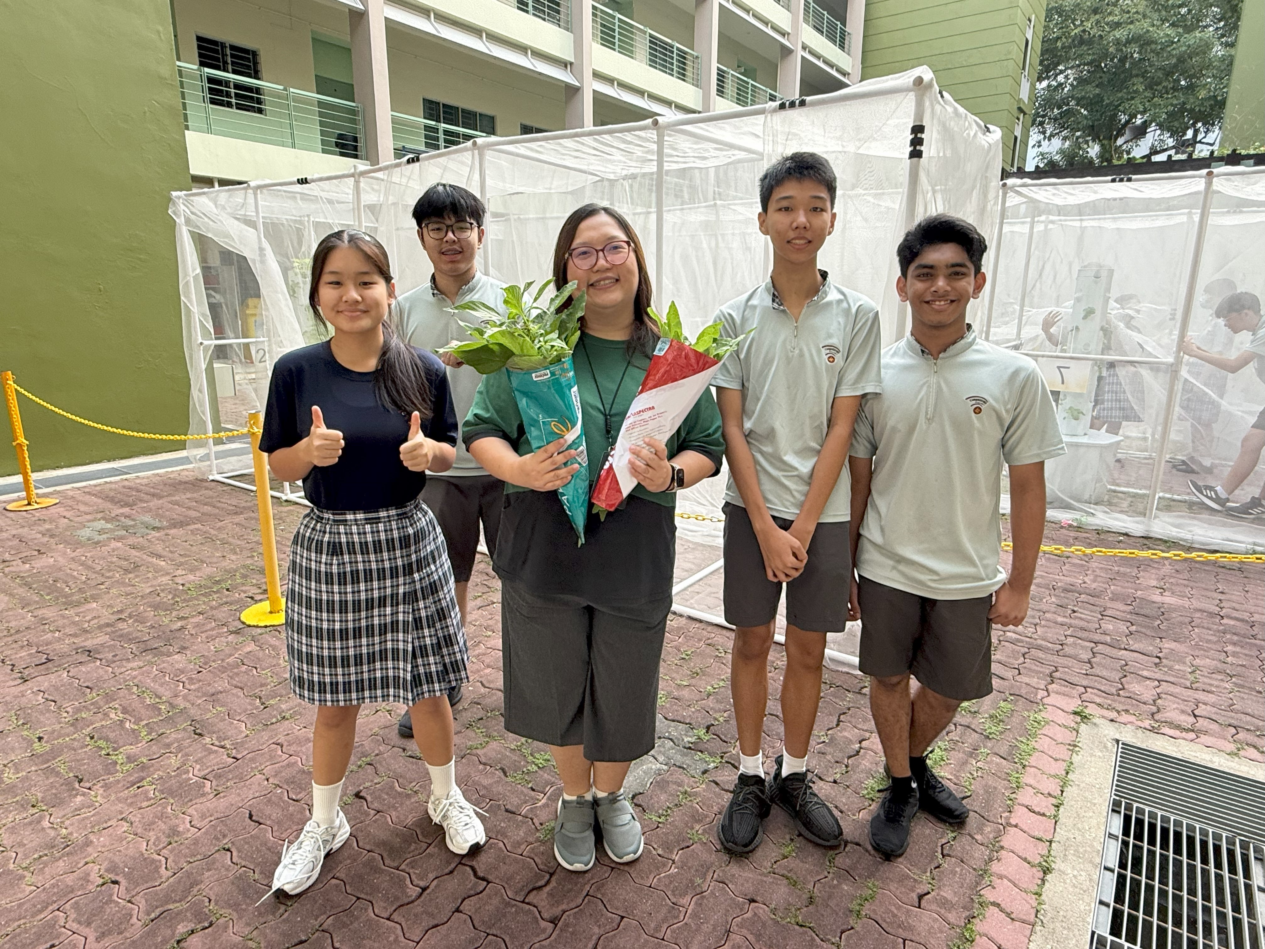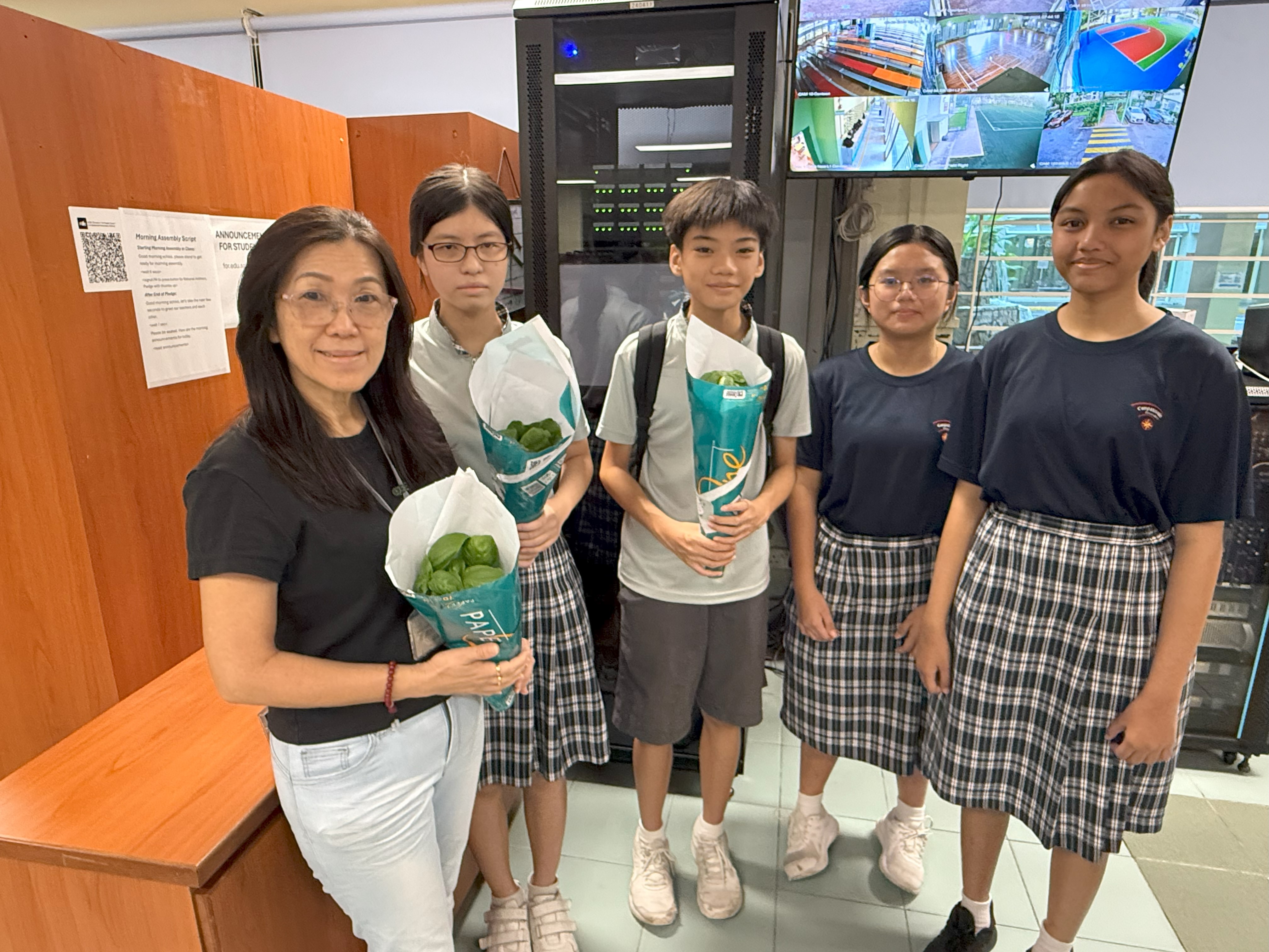 Secondary 2 students harvested vegetables and shared them with our staff and the Allkin Active Aging Centre.