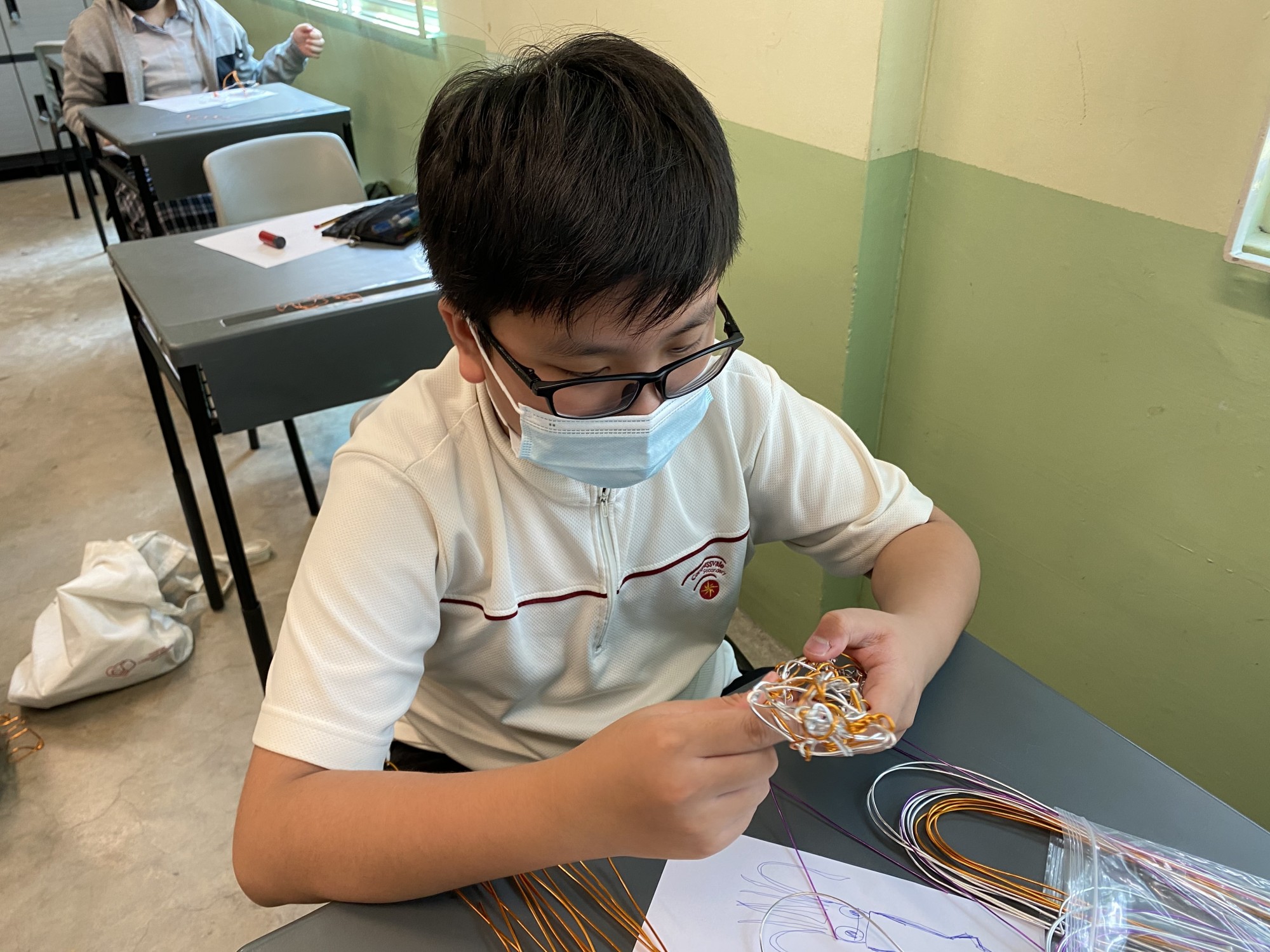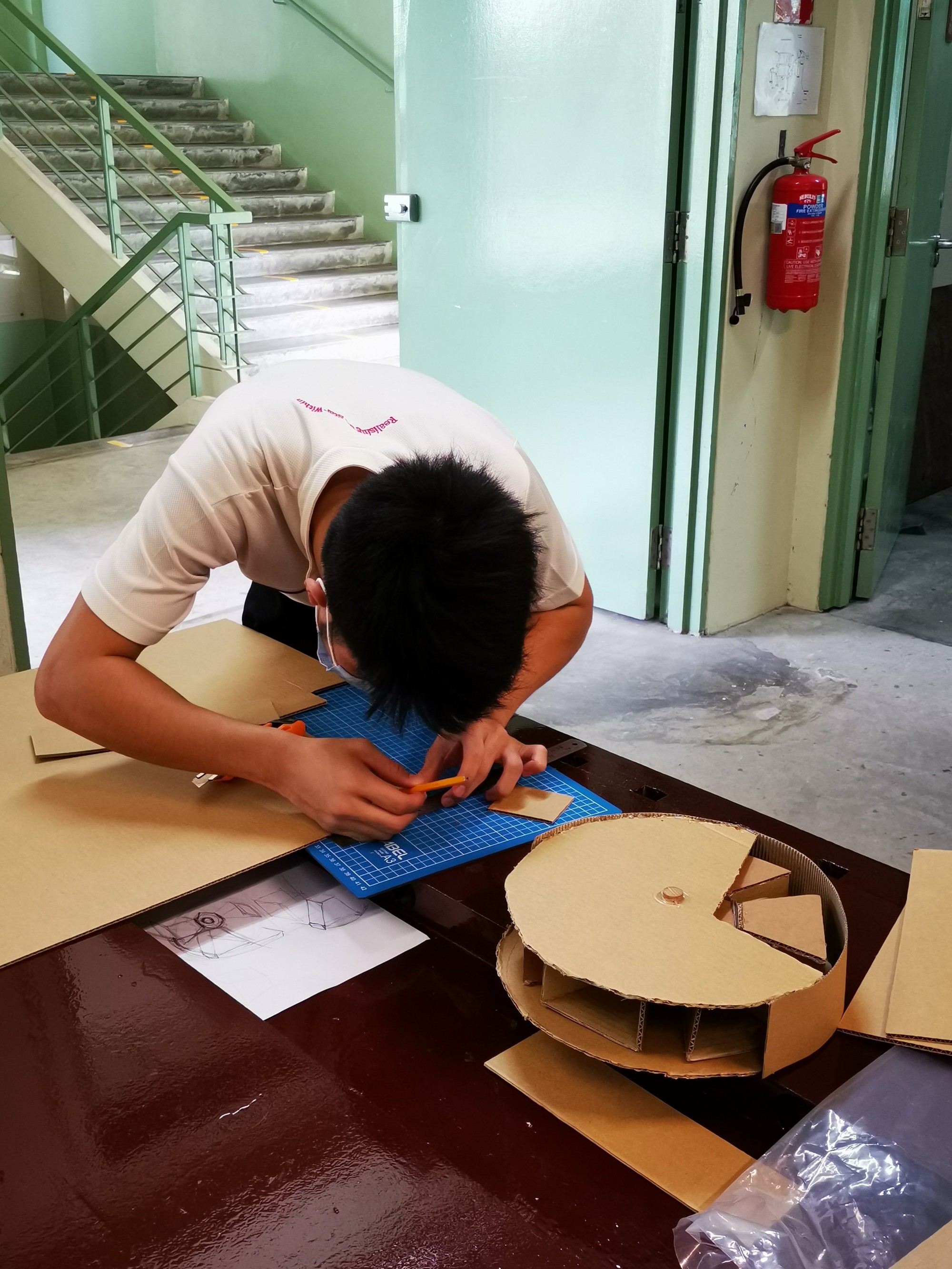 Upper Sec student working on his mock up