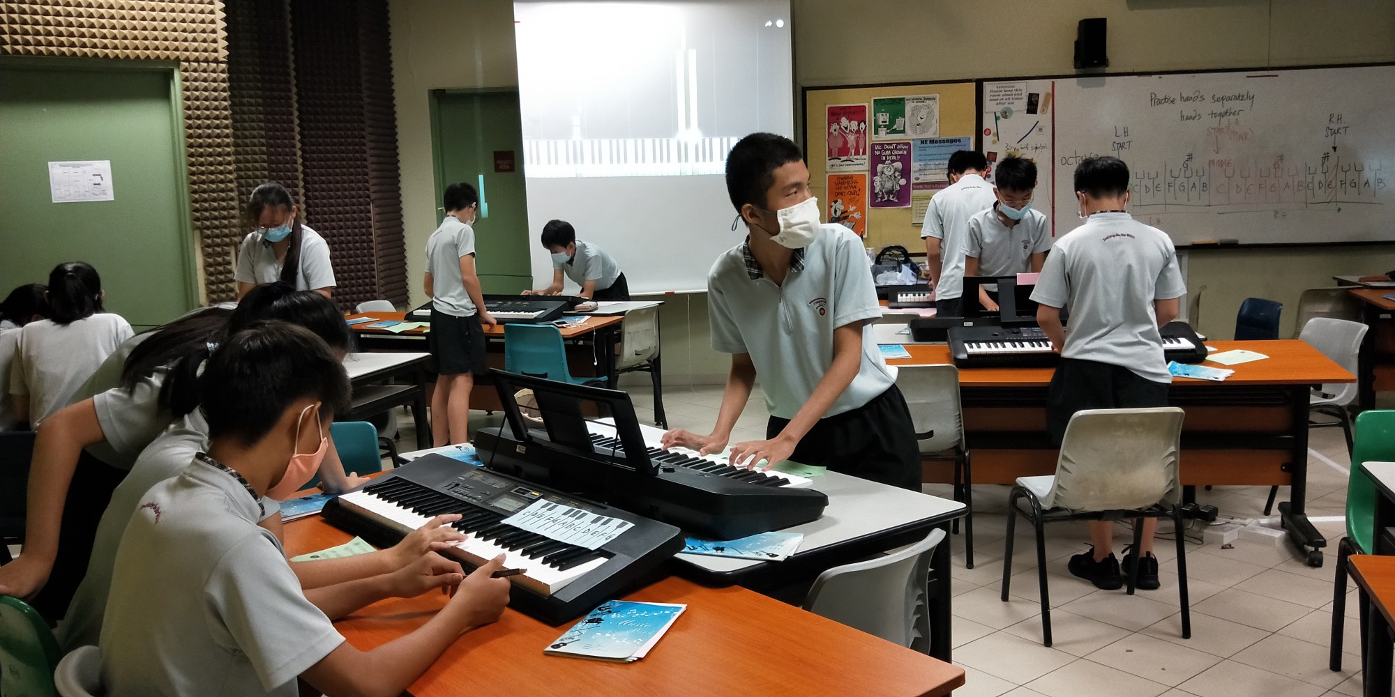 Music students jamming with keyboard