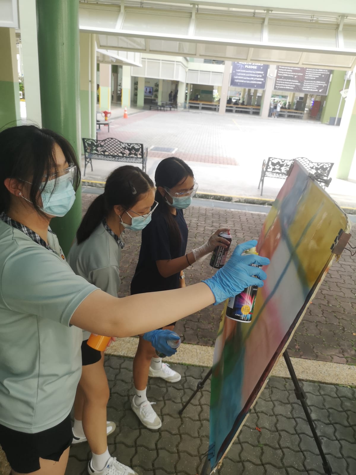GEAR-UP students have Experiential Learning in Arts through graffiti spraying painting.